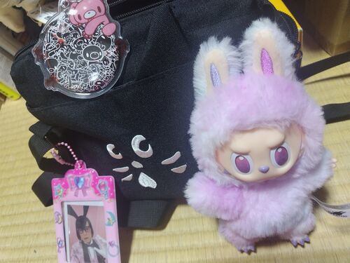 ラブブお迎えしました!幸運ちゃんです!のおかげかてんまもり(チェキ)(お守りも持ってる)のおかげかとっっても充実したえーすくをエンジョイできましたっ! でもラブブぶら下げて行動するの落っことしそうでこわかったです! にゃーのバッグは友人にもらい…